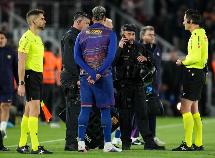 Published On 23/4/202623/4/2026 | آخر تحديث: 00:21 (توقيت مكة)آخر تحديث: 00:21 (توقيت مكة) توقفت مباراة برشلونة وسيلتا...